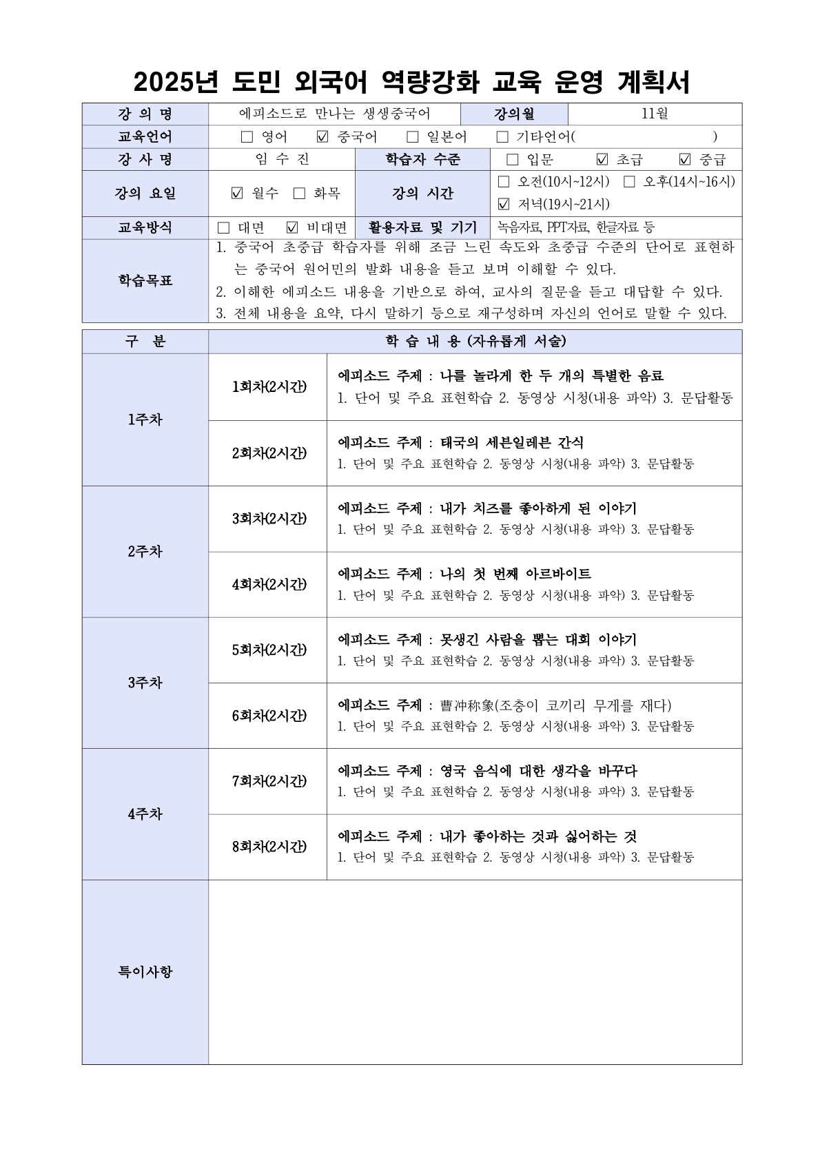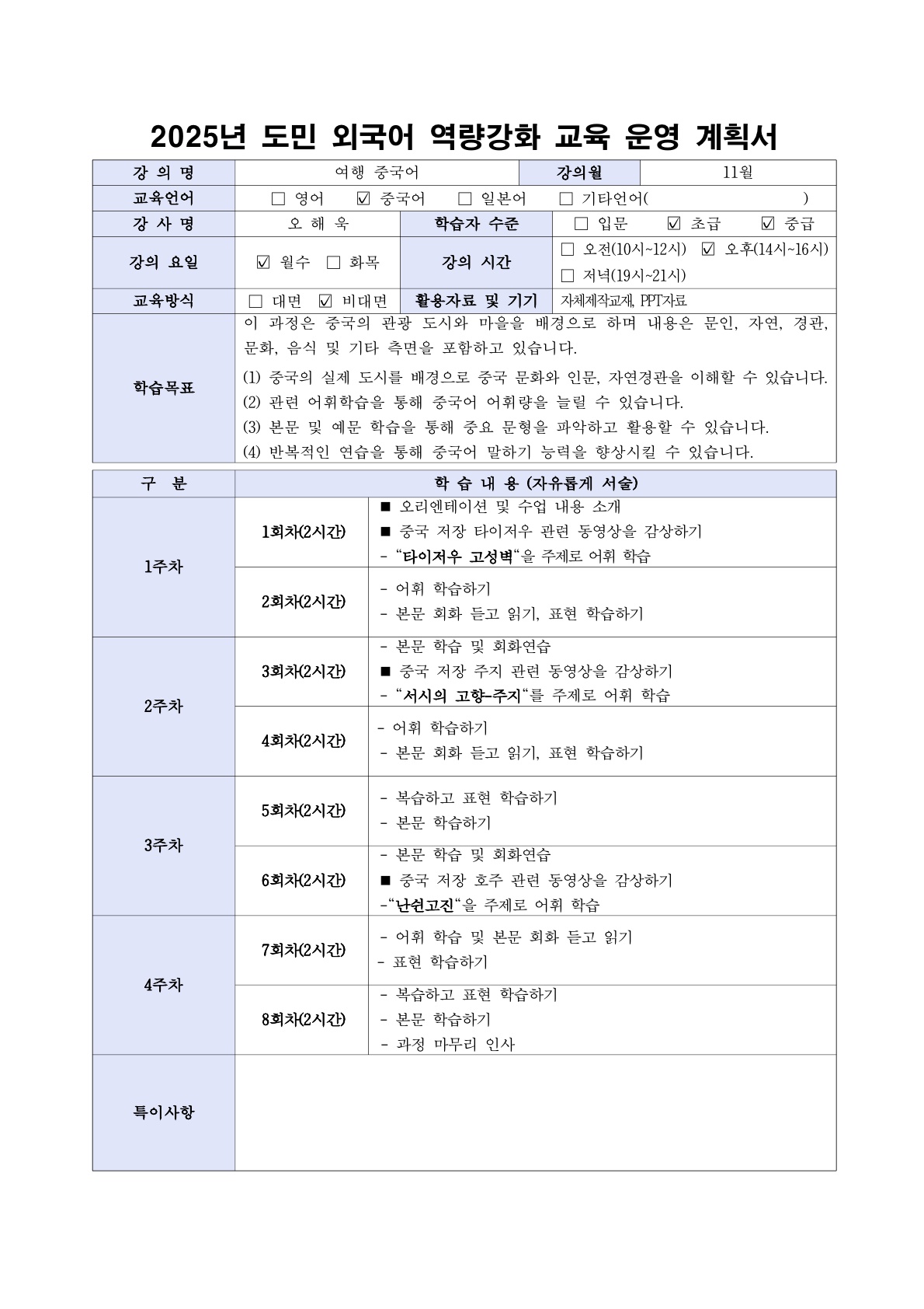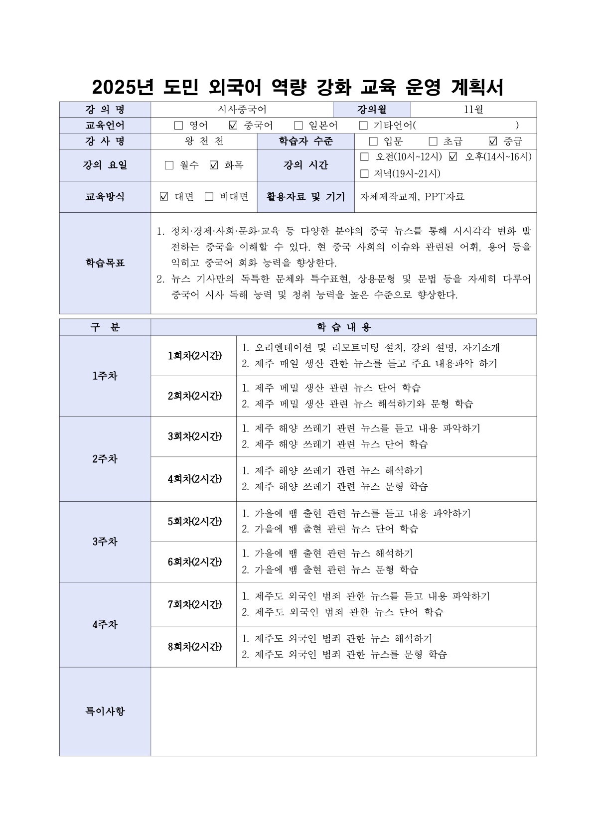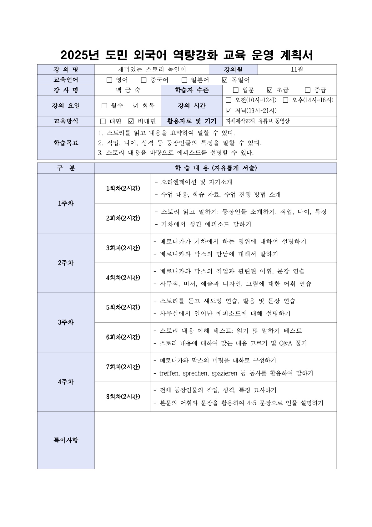 | 「2025³â ƯÁ¤ÁÖÁ¦.ºÐ¾ßº° ¿Ü±¹¾î ±³À°¡¹ ´Ü±â°úÁ¤ 8±â(11¿ù) ±³À°»ý ¸ðÁý | |