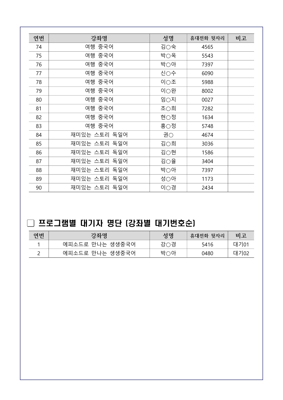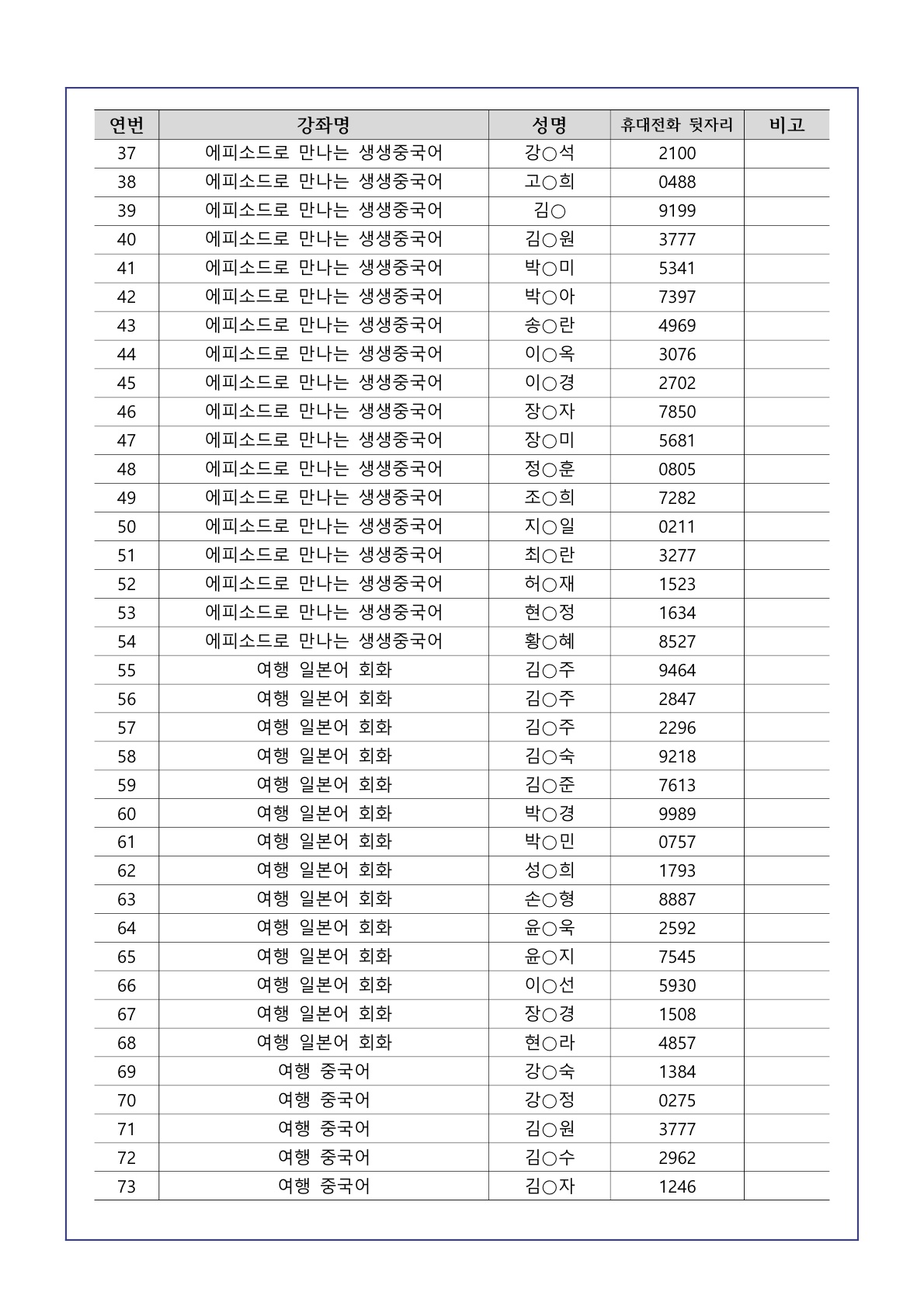 ¡Ø °ÀǺ° ±³À°½Ã°£Ç¥¸¦ ¹Ýµå½Ã È®ÀκÎŹµå¸³´Ï´Ù. ¡Ø ù ¼ö¾÷ Àü±îÁö īī¿ÀÅå ¿ÀÇÂäÆÃ¹æ ¹ÌÀÔÀå½Ã ¼ö° Ãë¼Ò·Î °£ÁֵǿÀ´Ï ¹Ýµå½Ã ÀÔÀå¹Ù¶ø´Ï´Ù. (ÀÔÀå¾È³» º°µµ ¹®ÀÚ ¹ß¼Û ¿¹Á¤) ¡Ø ±³À° ¹Ì¼ö·á½Ã(Ãâ¼®·ü 70%ÀÌ»ó) ´ÙÀ½ Â÷¼ö ½ÅûÀÌ ºÒ°¡ÇÕ´Ï´Ù. ¡Ø ÀÚ¼¼ÇÑ ³»¿ëÀº °ø°í¹® ¹× °Àǽð£Ç¥¸¦ È®Àιٶø´Ï´Ù. ¡Ø °ÀÇ ³À̵µ ¹× ½Ã°£Ç¥¸¦ È®ÀÎÇÏÁö ¾Ê¾Æ ¹ß»ýÇÏ´Â ¹®Á¦´Â ½ÅûÀÚ º»Àο¡°Ô ÀÖ½À´Ï´Ù.