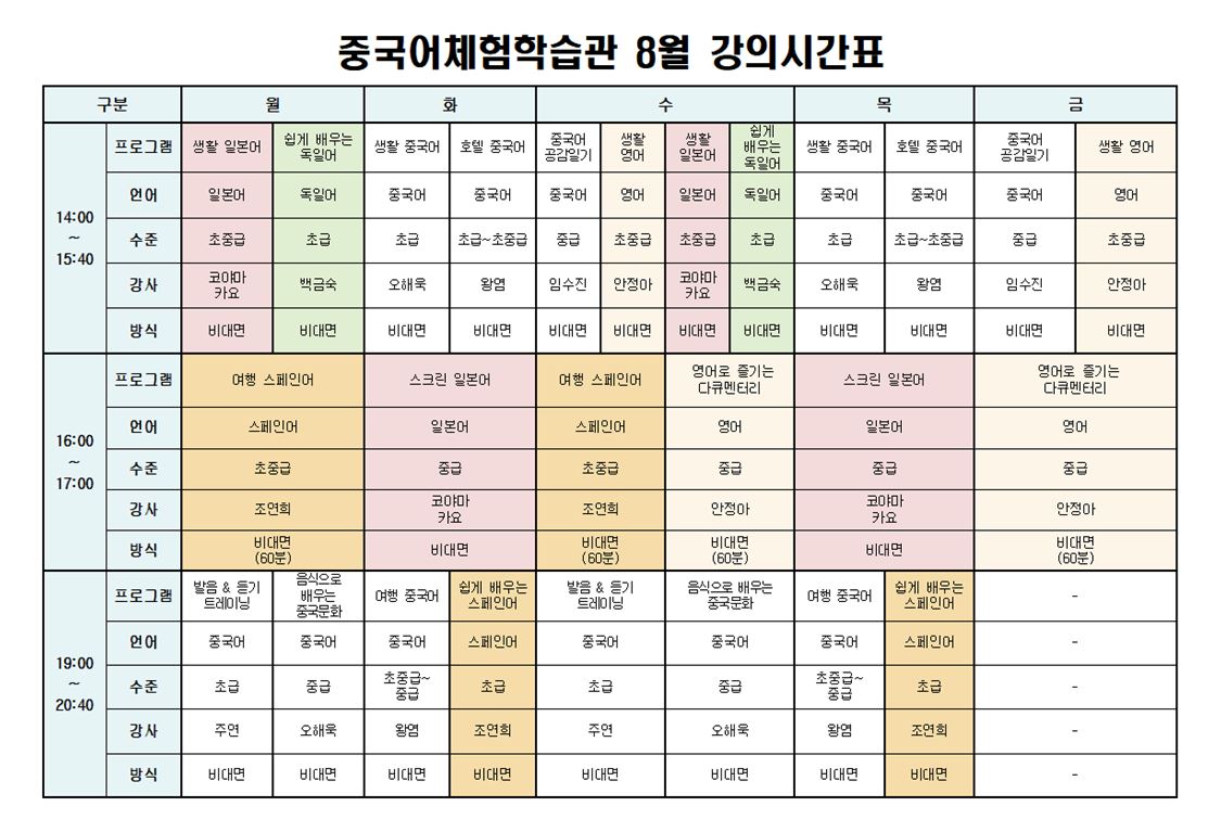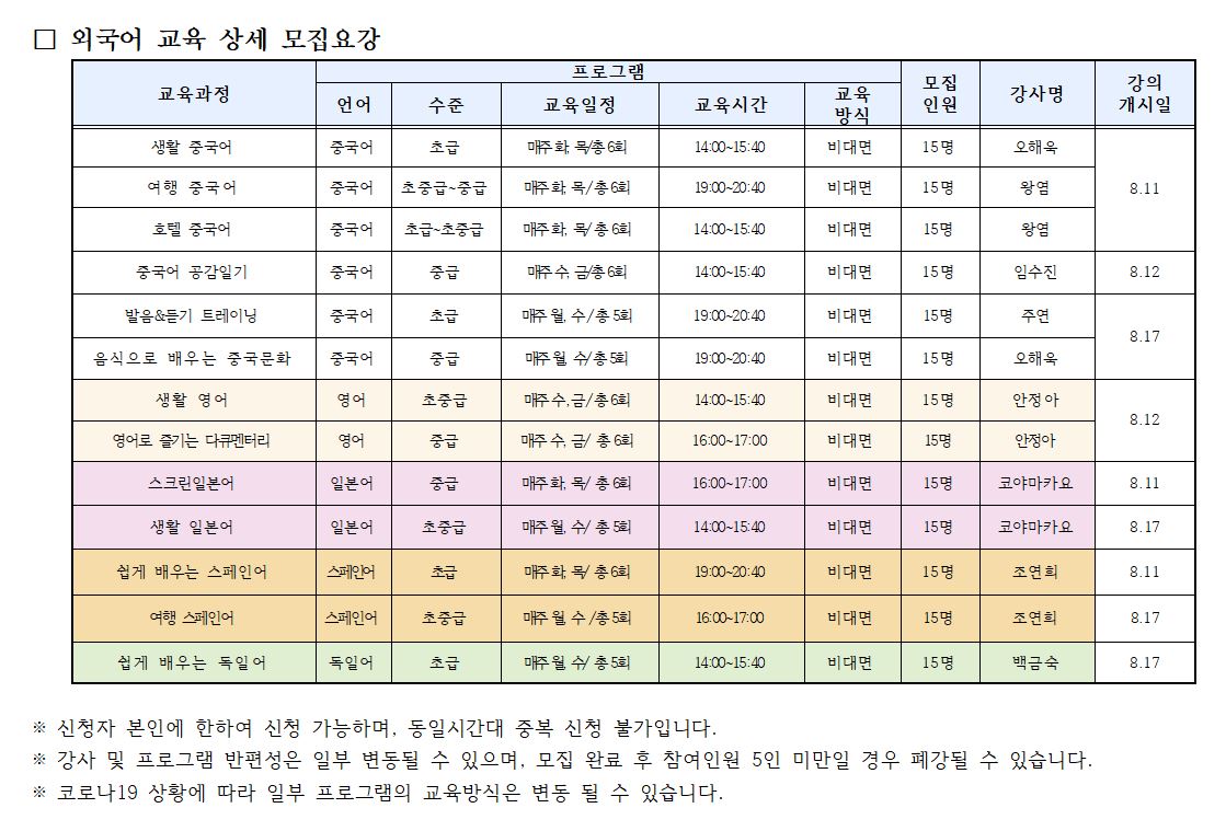 | <¸ðÁý>8¿ù ÀÌ¿ë ¿Ü±¹¾î ±³À°¡¼¹ßÀ½&µè±â Æ®·¹ÀÌ´× ¿Ü 12°³ ÇÁ·Î±×·¥¡½ ¸ðÁý¾È³» | |