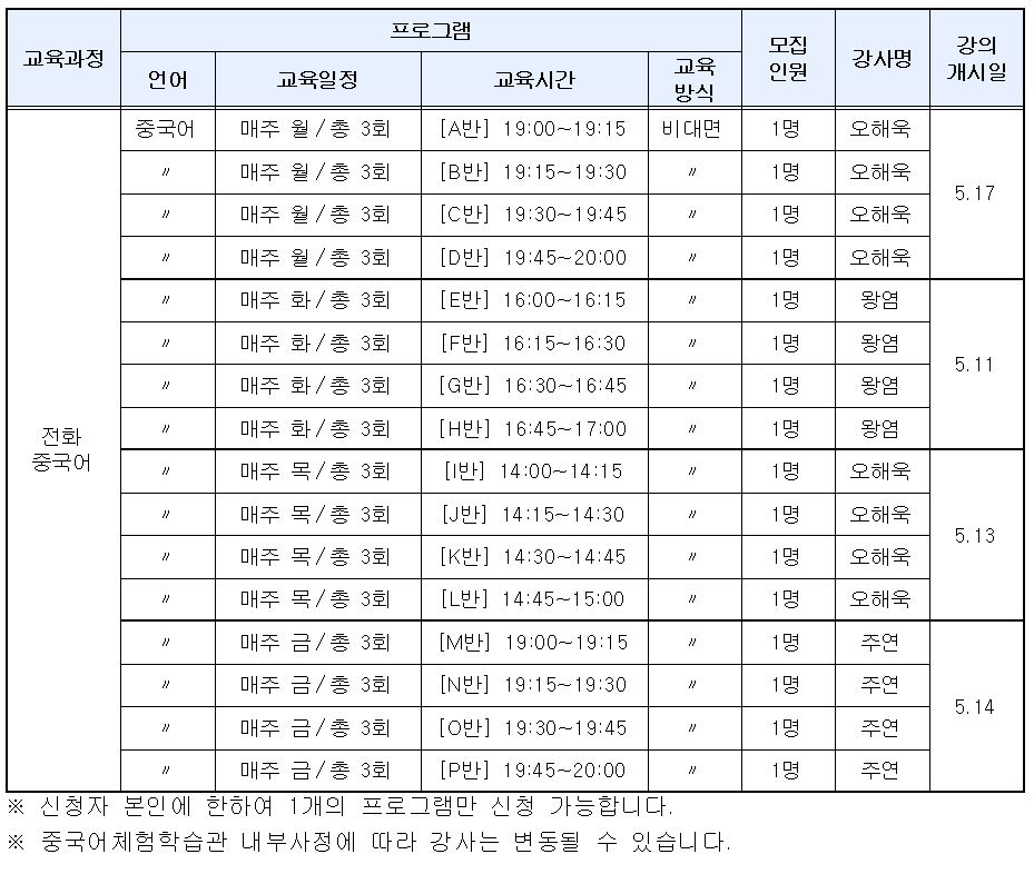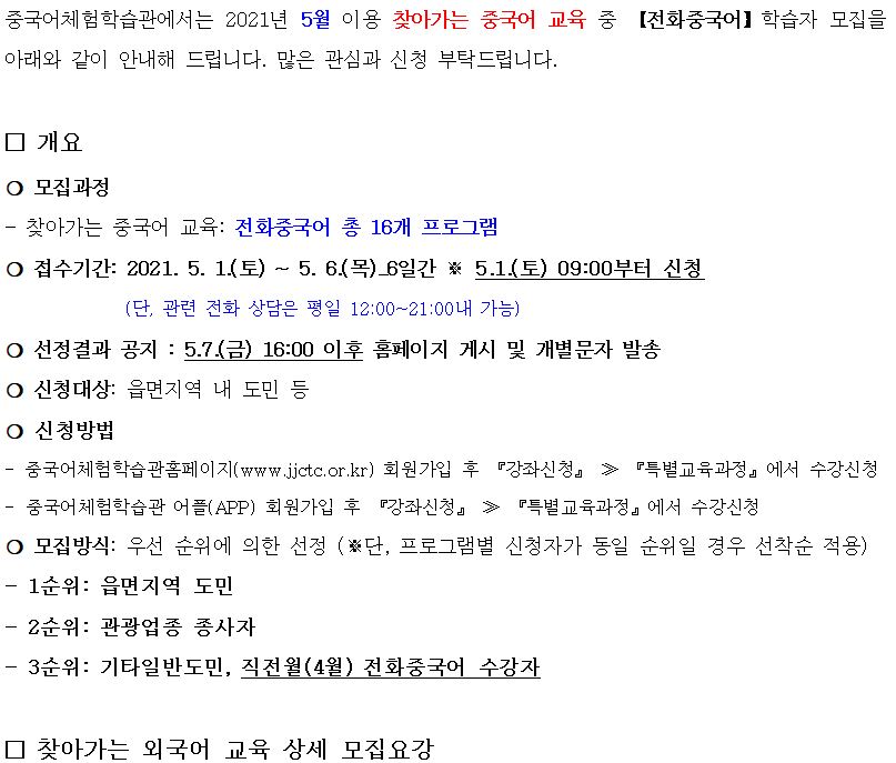 | ´ÙÀ½±Û | <¸ðÁý> 5¿ù ÀÌ¿ë ¿Ü±¹¾î ±³À° ¡¼¿©Çà Áß±¹¾î ¿Ü 11°³ ÇÁ·Î±×·¥¡½ ¸ðÁý¾È³» |