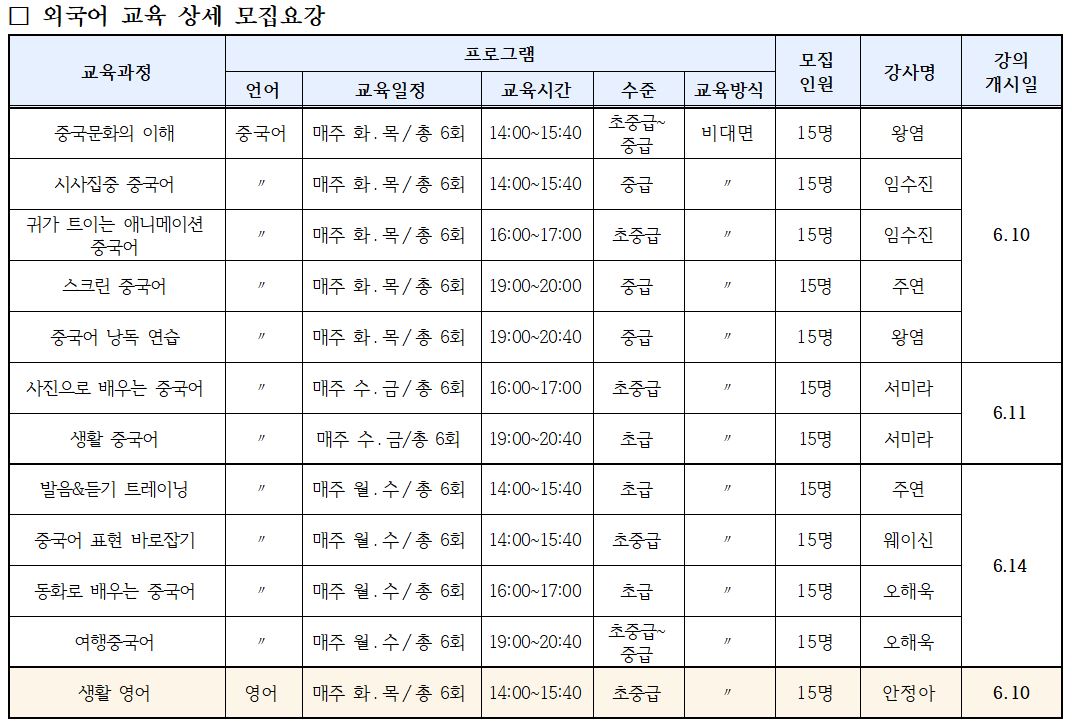| <¸ðÁý> 6¿ù ÀÌ¿ë ¿Ü±¹¾î ±³À° ¡¼Áß±¹¾î Ç¥Çö ¹Ù·ÎÀâ±â ¿Ü 11°³ ÇÁ·Î±×·¥¡½ ¸ðÁý¾È³» | |