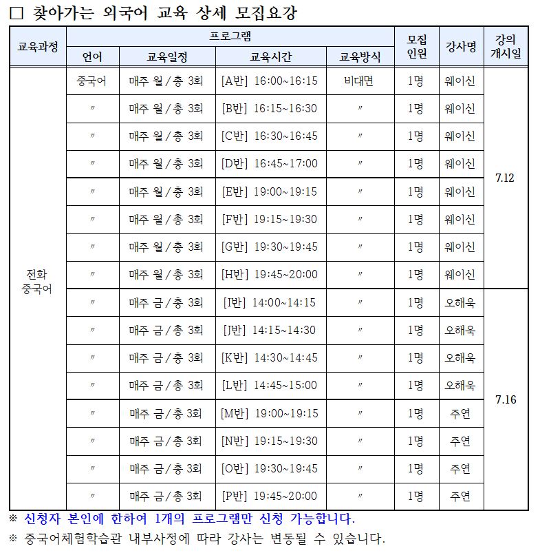 | ´ÙÀ½±Û | <¸ðÁý> 7¿ù ÀÌ¿ë ¿Ü±¹¾î ±³À° ¡¼Áß±¹¾î Ç¥Çö ¹Ù·ÎÀâ±â ¿Ü 11°³ ÇÁ·Î±×·¥¡½ ¸ðÁý¾È³» |