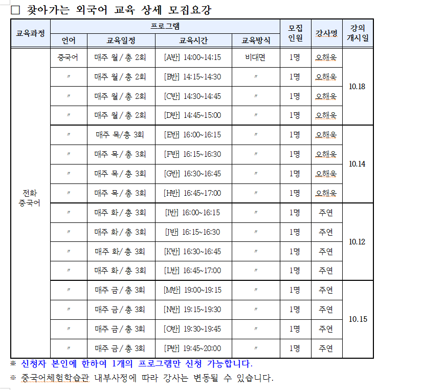 | ´ÙÀ½±Û | <¸ðÁý> 10¿ù ÀÌ¿ë ¿Ü±¹¾î ±³À° ¡¼Áß±¹¾î ³¶µ¶ ¿¬½À ¿Ü 13°³ ÇÁ·Î±×·¥¡½ ¸ðÁý¾È³» |