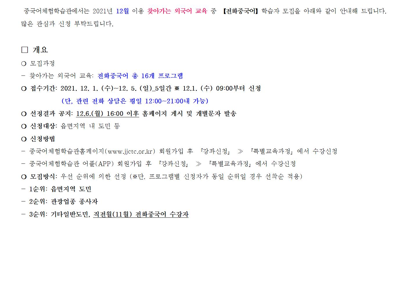| <¸ðÁý> 12¿ù ÀÌ¿ë ã¾Æ°¡´Â ¿Ü±¹¾î ±³À° ¡¼ÀüÈÁß±¹¾î¡½ ¸ðÁý¾È³» | |