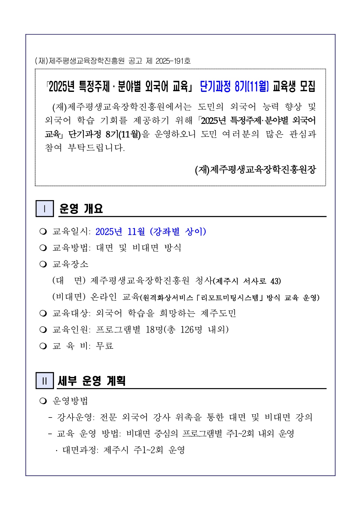 「2025³â ƯÁ¤ÁÖÁ¦.ºÐ¾ßº° ¿Ü±¹¾î ±³À°¡¹ ´Ü±â°úÁ¤ 8±â(11¿ù) ±³À°»ý ¸ðÁý | |