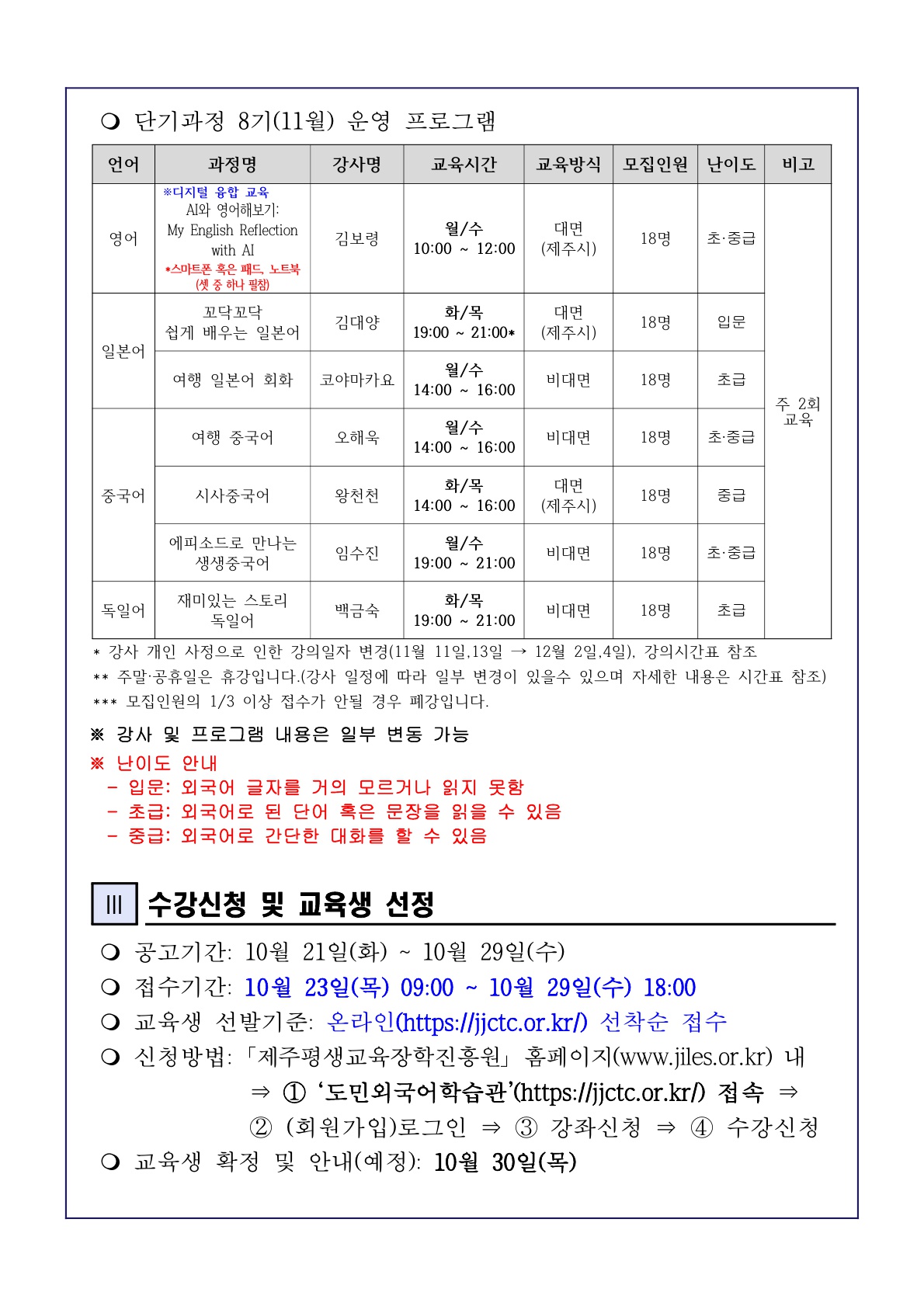 ´ÙÀ½±Û | [7±â(10¿ù) ±³À°´ë»óÀÚ ¼±Á¤ °á°ú] 「2025³â ƯÁ¤ÁÖÁ¦.ºÐ¾ßº° ¿Ü±¹¾î ±³À°¡¹ ´Ü±â°úÁ¤ 7±â(10¿ù) ±³À°´ë»óÀÚ ¼±Á¤°á°ú ¾È³» |